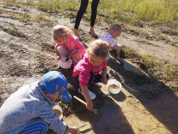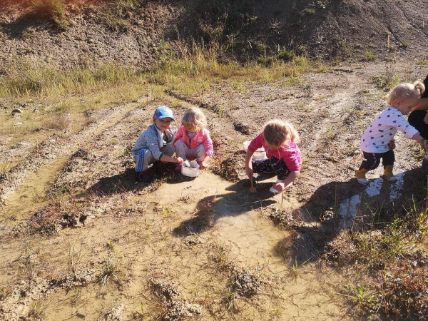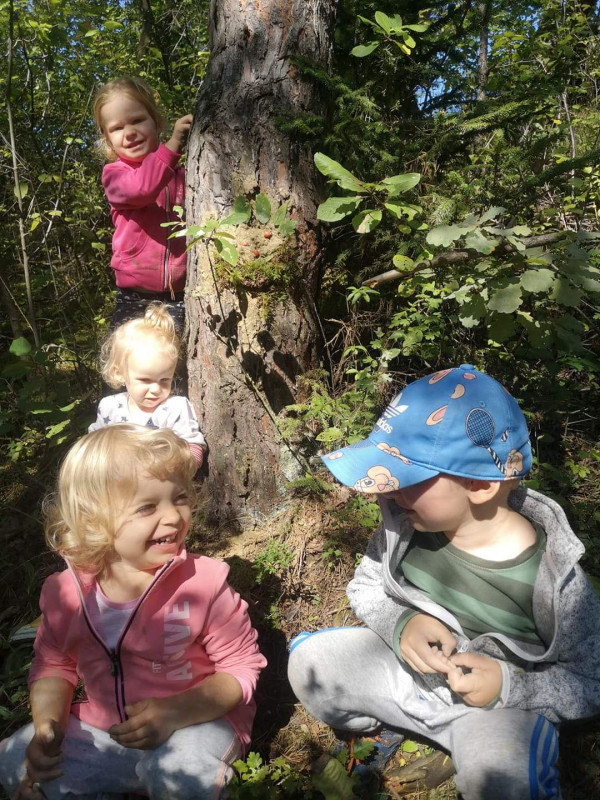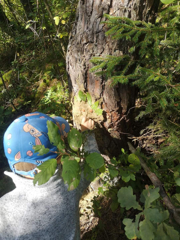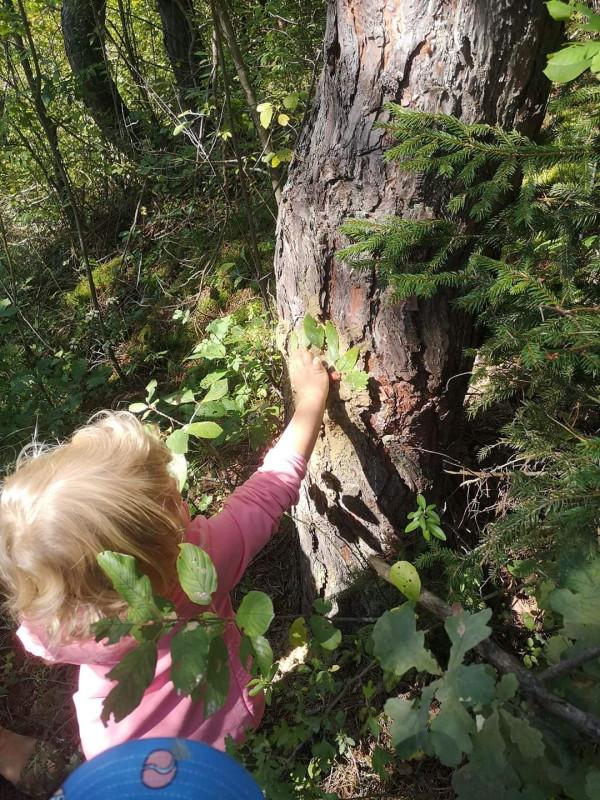 Dnes ráno sme si v domčeku pribalili aj nejaké to náradie a pracovali sme s vodou, hlinou a prírodninami, ktoré sme našli v lese. Vybrali sme si dve krásne borovice, na ktorých sa teraz smejú dvaja lesní škriatkovia. Sú to veľkí parádnici a pošepkali nám aby sme si dali záležať. Vybrali sme preto tie najkrajšie ozdoby, lístky, šípky, konáriky a voňavý mach aby mohli potešiť toho kto si ich znovu všimne:)